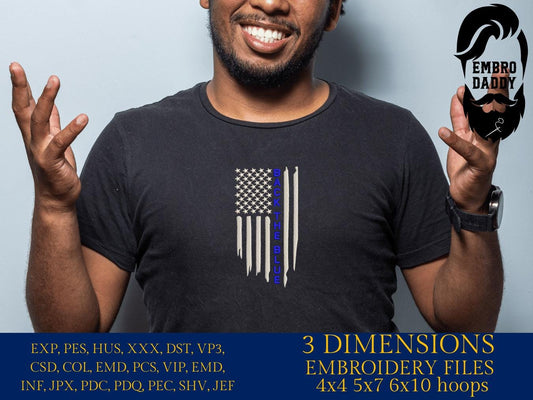 Machine Embroidery files, USA flag, police Thin Blue Line, back the blue, dst, PES, xxx, hus & more