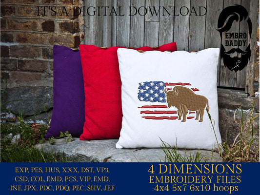 Machine Embroidery files, Usa Flag bison, DST, PES, xxx, hus & more