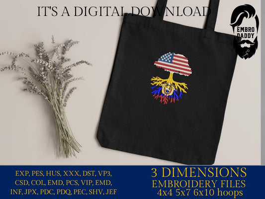 Machine Embroidery files, USA Tree Ecuador roots, PES, xxx, hus, dst & more
