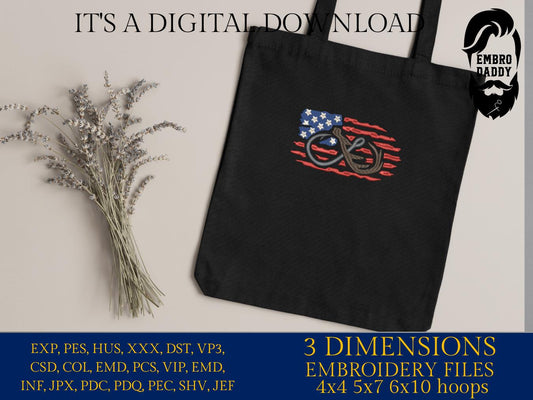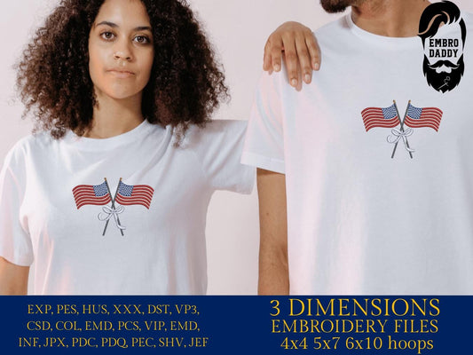 Machine Embroidery files, USA flag, American Flags with Ribbon Bow, DST, PES, xxx, hus & more