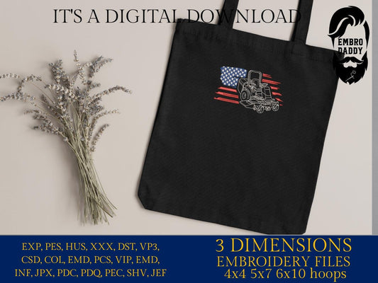 Machine Embroidery files, US Lawn Mower, Lawn Mower With Flag, Landscaping, PES, dst, xxx hus & more