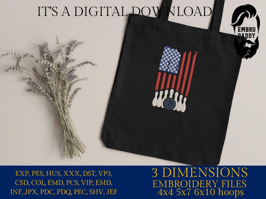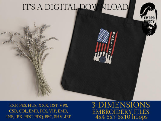 Machine Embroidery files, USA flag, bowling, PES, dst, xxx, hus & more
