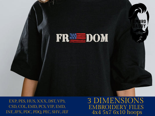 Machine Embroidery files, Freedom, USA flag, DST, PES, xxx, hus & more