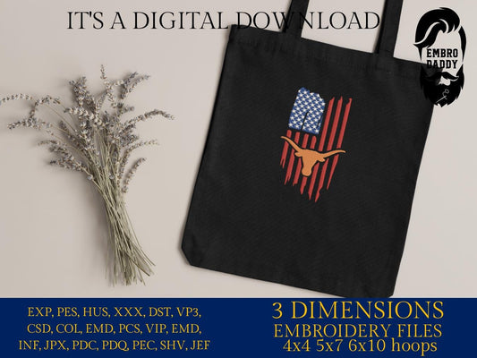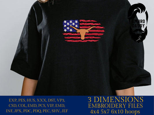 Machine Embroidery files, Longorn, Usa Flag PES, DST, xxx, hus & more