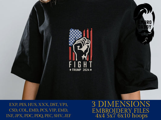 Machine Embroidery files, USA flag, fight, fist, 2024 Election, President, PES, xxx, dst, hus & more