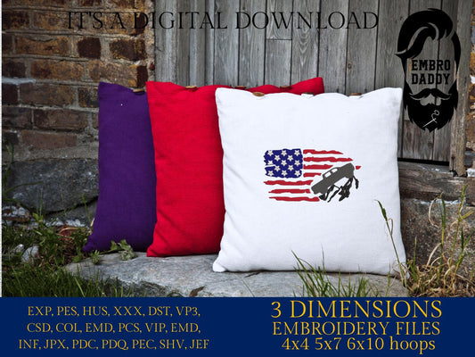 Machine Embroidery files, USA Flag, deer hunting, rifle, forest, PES, DST, xxx, hus & more