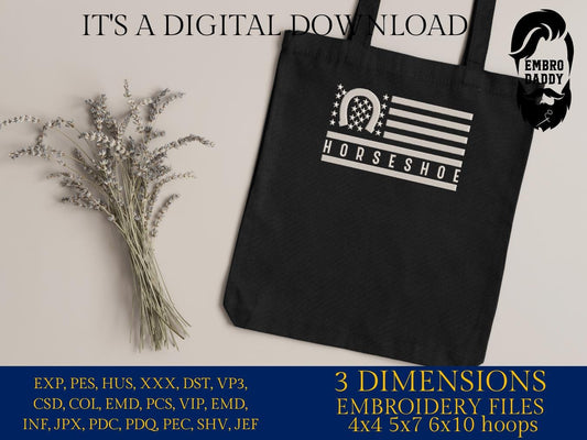 Machine Embroidery files, Usa flag horseshoe, embroidery files, PES, dst, xxx, hus & more