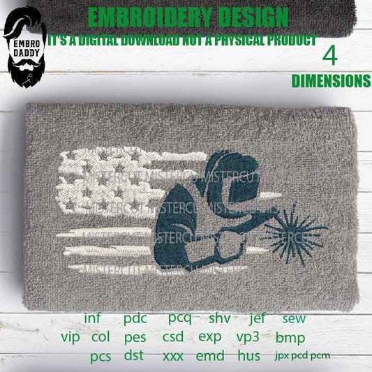 Machine Embroidery files, usa flag Welder, American Flag gift idea PES, xxx, hus & more,