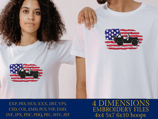 Machine Embroidery files, USA flag, Off road car, PES, xxx, dst, hus & more