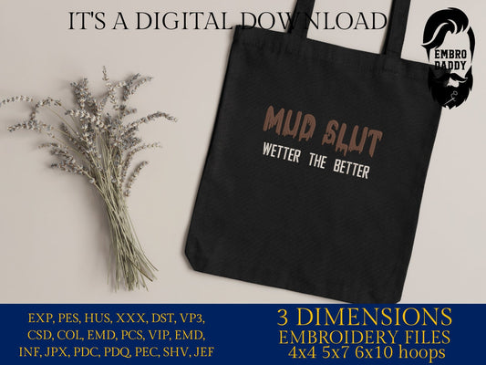 Machine Embroidery files, offroad vehicle, mud slut, funny, dst PES, xxx, hus & more