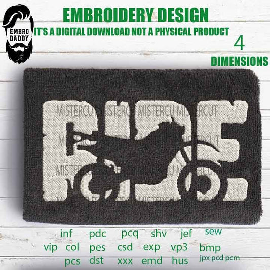 Machine Embroidery files, RIDE embroidery files, bike Design, motorbike PES, xxx, hus, vip & more