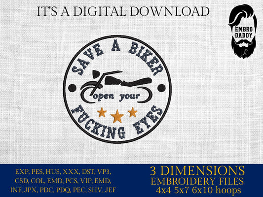 Machine Embroidery files, save a biker, biker, PES, xxx, hus & more