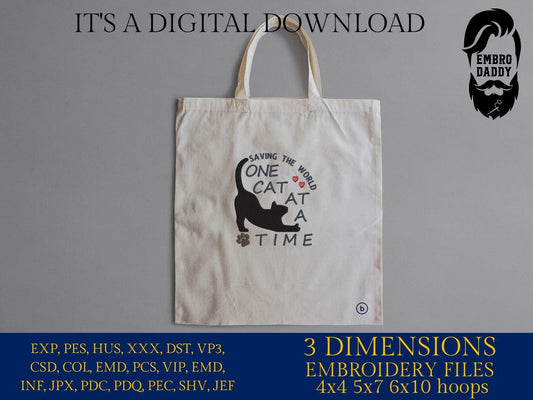 Machine Embroidery files, saving the world one cat at a time, PES, DST, xxx, hus and more