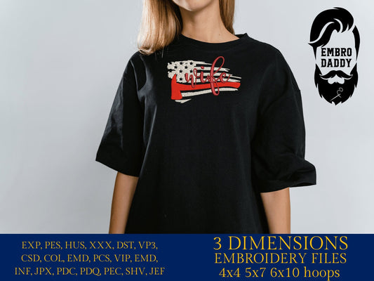 Machine Embroidery files, USA flag firefighter wife, PES, xxx, hus & more, embroidery files