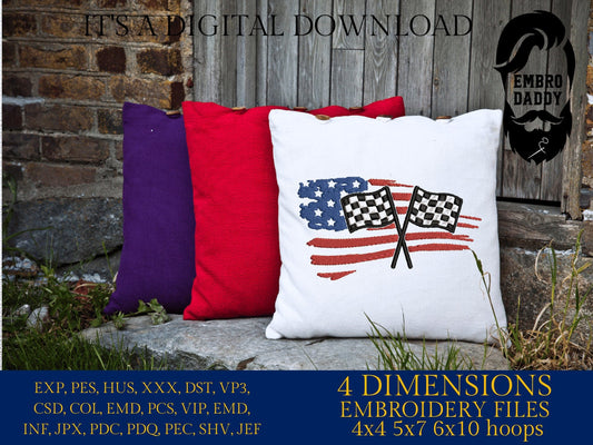 Machine Embroidery files, USA flag, Checkered Flag, racing USA flag, Racelife PES, xxx, hus & more