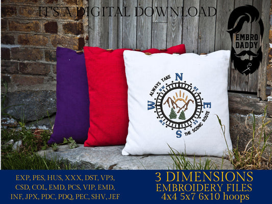 Machine Embroidery files, always take the scenic route, PES, DST, xxx, hus & more