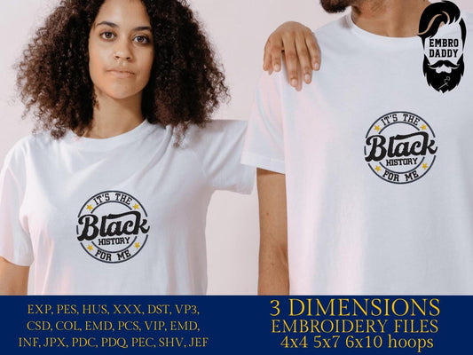 Machine Embroidery files, it's the black history for me, PES, hus, dst, vp3 & more