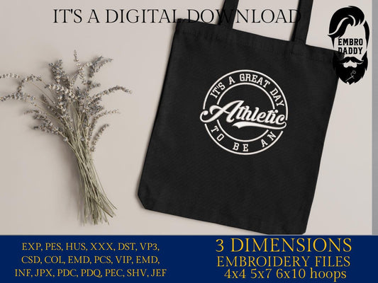 Machine Embroidery files, It's a Great Day To Be An Athletic, PES, xxx, hus & more, embroidery files