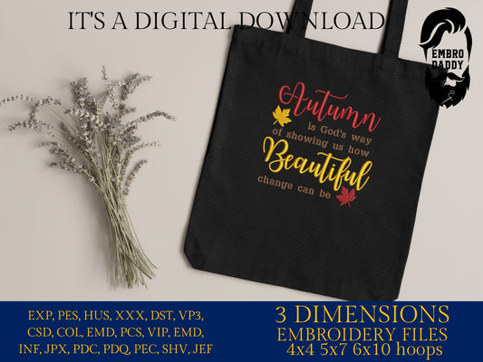 Machine Embroidery files, Autumn God's way, Beautiful, PES, DST, xxx, hus & more