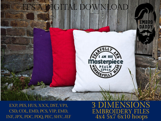 Machine embroidery files, I Am Fearfully And Wonderfully Made , Psalms 139:14 PES, DST, hus & more