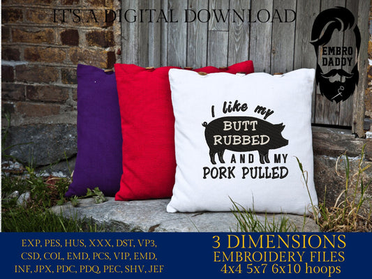 Machine Embroidery files, I Like My Butt Rubbed And My Pork Pulled, PES, DST, xxx, hus & more