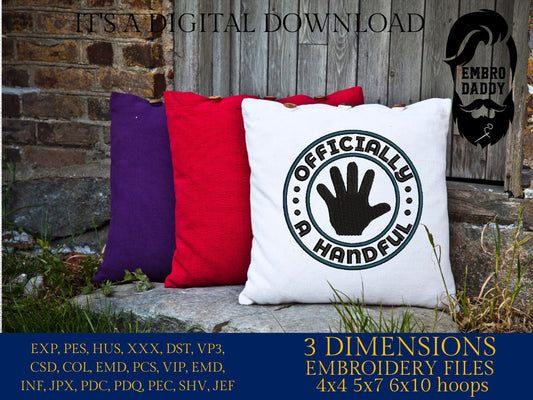 Machine Embroidery files, I'm a handful, 5 years old, PES, DST, xxx, hus & more