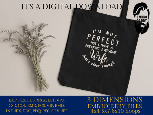 Machine Embroidery files, I'm not perfect, awesome wife, PES, DST, xxx, hus & more